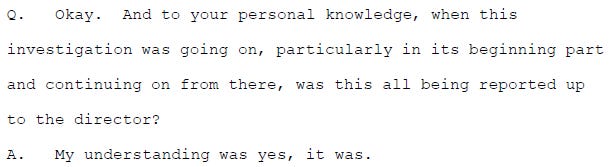He explained that the investigation was run from FBI headquarters. Here’s is Auten’s description of the chain of reporting: