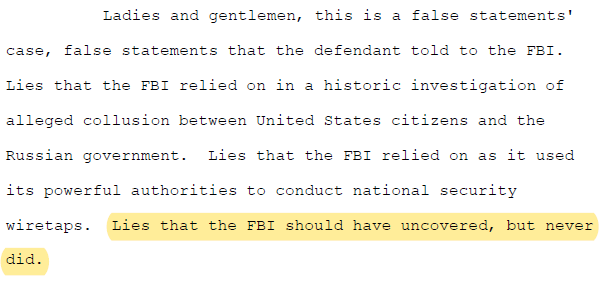 Special Counsel Prosecutor Michael Keilty opened with explanations of Danchenko’s lies to the FBI and discussed some FBI misconduct: