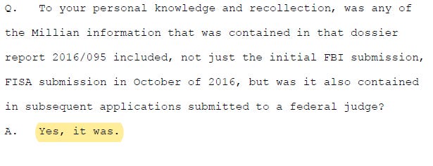 However, the Millian allegations – which arose from Danchenko’s claims to Steele – were still included in original FISA application and all subsequent renewals: