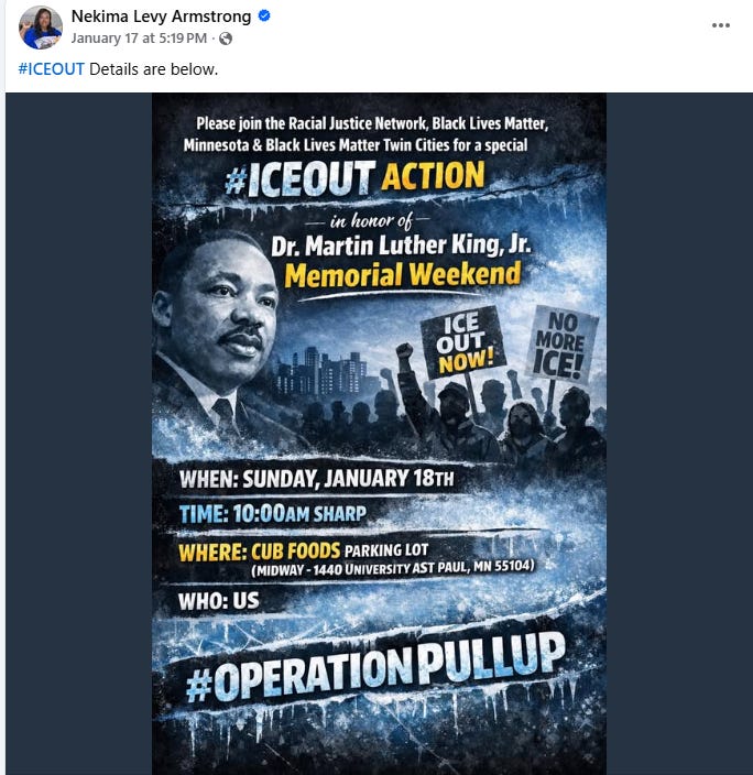 As I’m sure you’ve seen, the federal immigration operation in Minnesota was answered not only by public protests but also disrupted by agitators. On January 7, for example, Renee Good was blocking a street with her SUV before her confrontation with federal agents – where she drove towards an officer (not a wise decision) – that left her shot and killed.