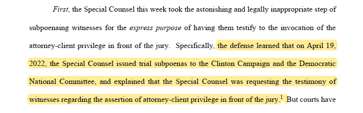 Durham states the “purported privilege holders who have intervened do so in a case in which the defendant has denied representing any client when he brought the Russian Bank-1 allegations to the FBI.” The privilege controversy thus entraps Sussmann to a certain extent, seemingly precluding his denial that he was working on behalf of a client. Brilliant.