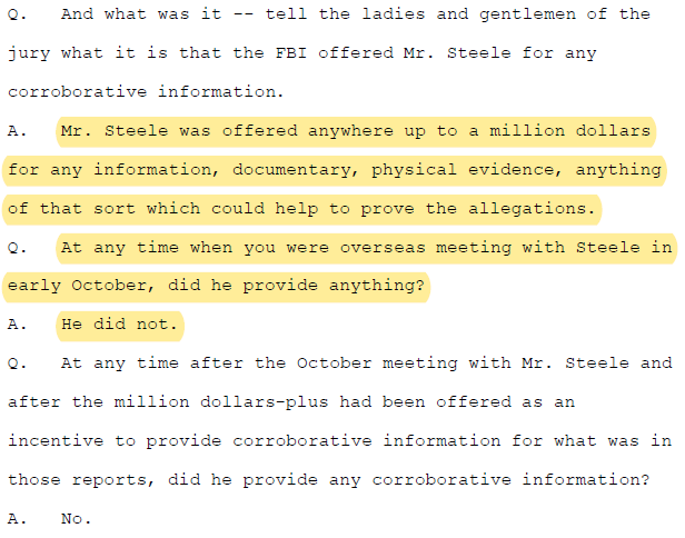 Steele was offered “up to a million dollars” to corroborate the Dossier.