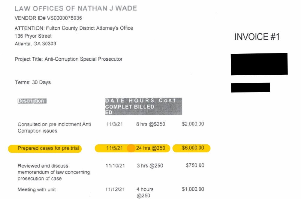 There’s something potentially more damaging in the release of Wade’s billing records. It turns out that he has submitted false records. In one invoice, Wade billed Fulton County for 24 hours of work (billed at $250/hour) on November 5, 2021.