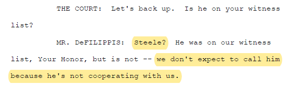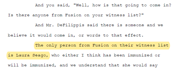 Laura Seago from Fusion GPS will (likely) testify at trial. We previously reported that Seago was identified as the “tech maven” the government expected to call at trial. At this hearing was the first time we saw Seago’s name explicitly mentioned as the Fusion GPS witness.