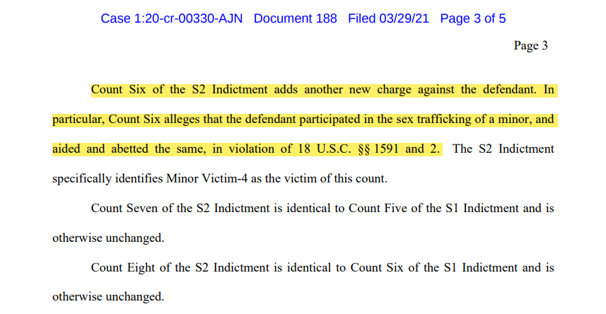 NEW - Superseding Indictment hits Ghislaine Maxwell with charges for "sex trafficking of a minor"
