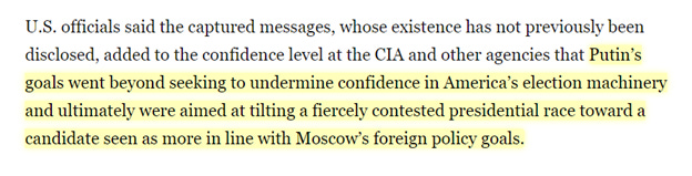 The U.S. officials cited by Entous and Miller went further, stating that Russia’s actions were aimed at installing Trump as President.