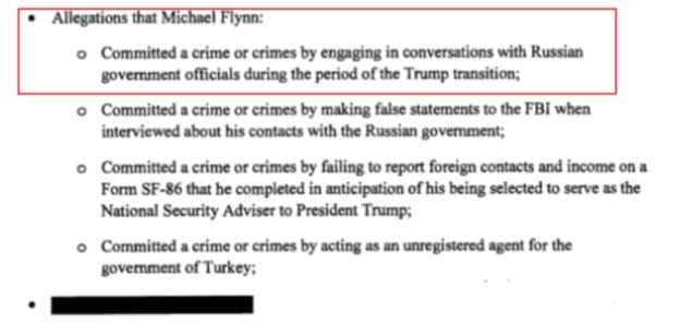 These perfectly legal communications served as a basis for part of the Special Counsel’s investigation of General Flynn.