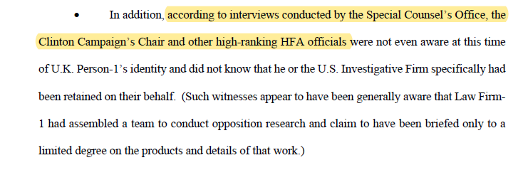 Special Counsel John Durham has asked high ranking officials from the Clinton Campaign and Hillary for America, including the Clinton Campaign’s Chair (who we believe to be John Podesta1), about their awareness of the activities conducted by Fusion GPS on Hillary’s behalf.