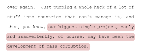 The single biggest project of the US in Afghanistan “may have been the development of mass corruption.”