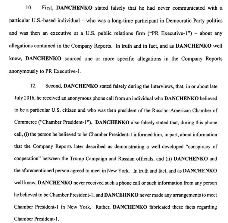 I’ll be updating this article as I dive deeper into the indictment. For more background, you can read the 2017 FBI Danchenko interviews here.