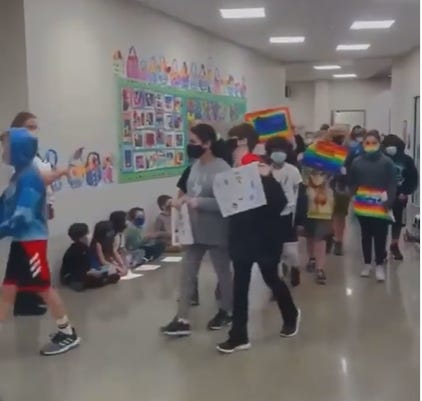 Or provide rainbow flags and buttons to 3rd graders (and instruct those students they must not tell their parents about what was discussed during school pride week)?