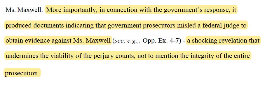Second, Maxwell alleges that the government “produced documents indicating that government prosecutors misled a federal judge to obtain evidence against Ms. Maxwell.”