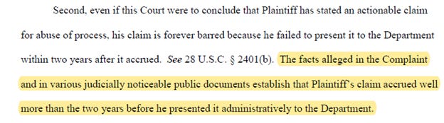 In essence, the US Government ran out the clock by hiding the witnesses and documents and evidence. Now it tells the victim of its crimes “tough luck, you’re too late.”