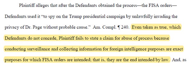 Remarkably, the US position is that invalid/illegal FISA renewals, secured after US government employees and officials mislead the FISA court, violate its duty of candor to the FISA court, and alter evidence (Clinesmith), “is not a perversion of the judicial process.”