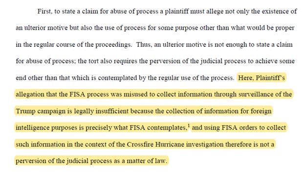 Carter Page also sued Kevin Clinesmith, who was convicted for altering a CIA email to further a FISA renewal. (He also sued James Comey, Joe Pientka, Lisa Page, Andrew McCabe, etc. They each have filed motions to dismiss; we will focus on a point from Clinesmith.)