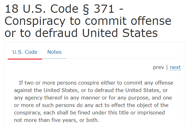 Conspiracy to Defraud the United States: 18 USC § 371