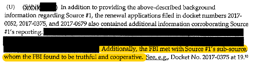The DOJ communicated this FBI assessment to the FISA Court, and thus adopted it for themselves, despite Danchenko’s obvious lies in his January 2017 interview (about his contacts with Russian intelligence) and the FBI’s recognition, in February 2017, that Danchenko wasn’t being truthful: