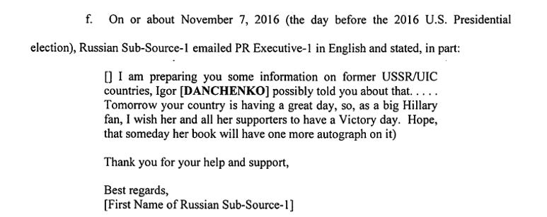 Reporting suggests the FBI had this information by June 2017 – by the time of the Danchenko interview. If that is the case, the FBI would likely have had their hands on this e-mail from Galkina to Dolan, stating that she was feeding him information on former USSR/UIC countries – and indicating her suspicion that Danchenko had informed Dolan of this.